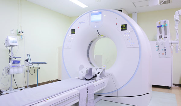 元は頭部、胸部、腹部などを輪切りにした画像を撮る装置でした。 よりコンピュータが高性能になったことで輪切りだけでなく縦切り、横切りにした画像を撮影したり、再構成して三次元の画像も作ることができるようになりました。 当院では、64列のMDCTが導入されており心臓CTにも対応しています。